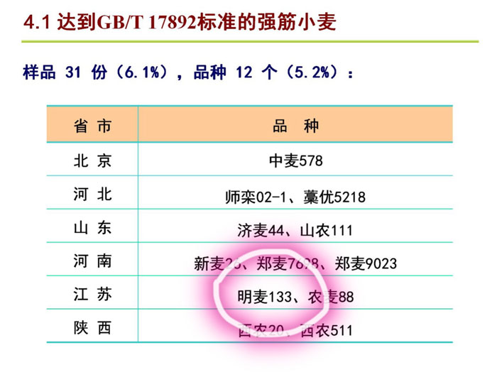 1.明天種業(yè)新品種“明麥133”達(dá)到GB/T 17892強(qiáng)筋小麥標(biāo)準(zhǔn)。
