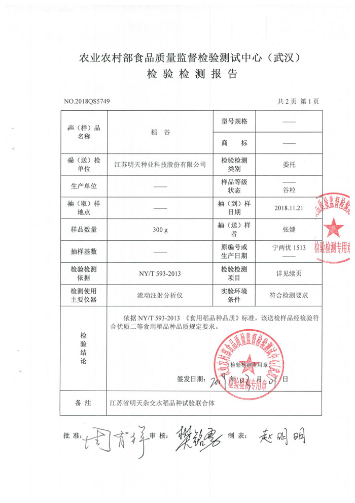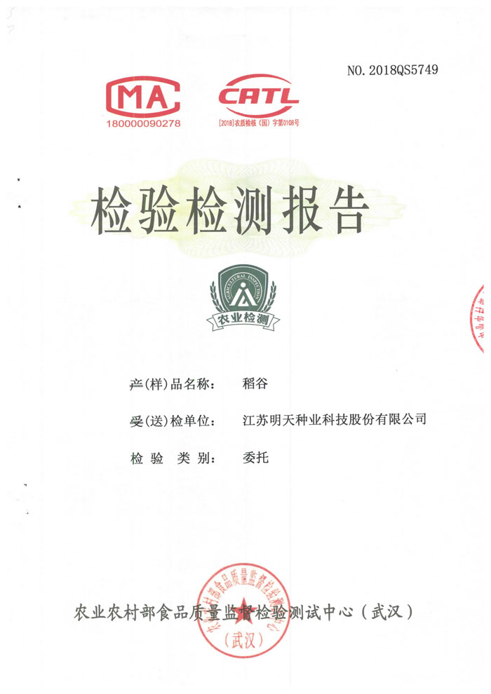 經江蘇農業科學院植保所鑒定:高抗條紋葉枯病,稻瘟病綜合抗性指數5.0,穗頸瘟損失率5級。